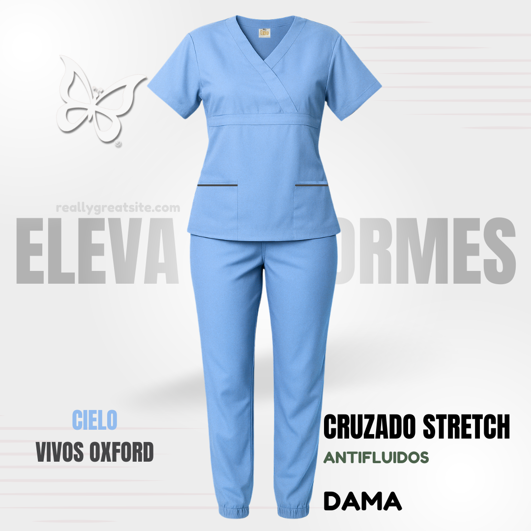 Nuestro scrub CRUZADO STRETCH ofrece estilo y un ajuste perfecto para estilizar tu figura durante toda la jornada.